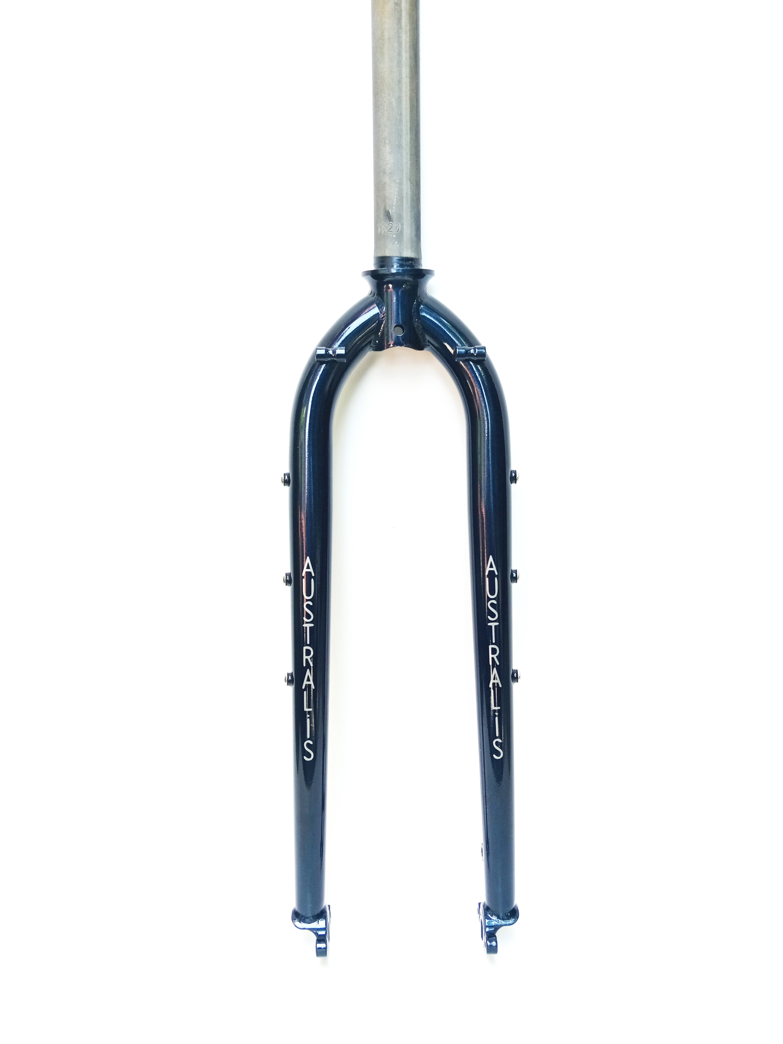 Horquilla rígida de cromoly para bicicletas de gravel 700c, 650b y MTB 26. Con una altura de eje a dirección de 420 mm. Para eje QR y con diversos ojetillos para parrillas y portabultos.
